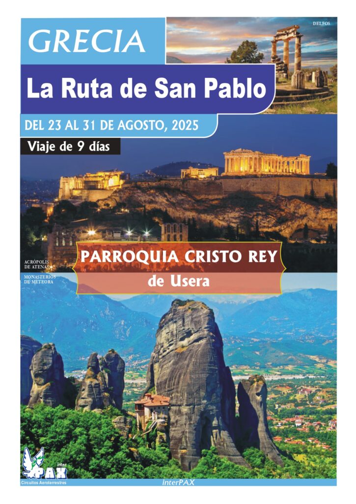 Este verano, te invitamos a formar parte de una experiencia única en nuestra peregrinación a la Ruta de San Pablo en Grecia, del 23 al 31 de agosto de 2025. Este viaje espiritual de 9 días recorrerá algunos de los lugares más emblemáticos que el Apóstol San Pablo visitó en su misión de evangelización, como Atenas, Meteora, Filipos y Tesalónica.
