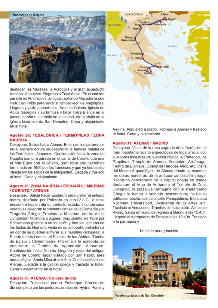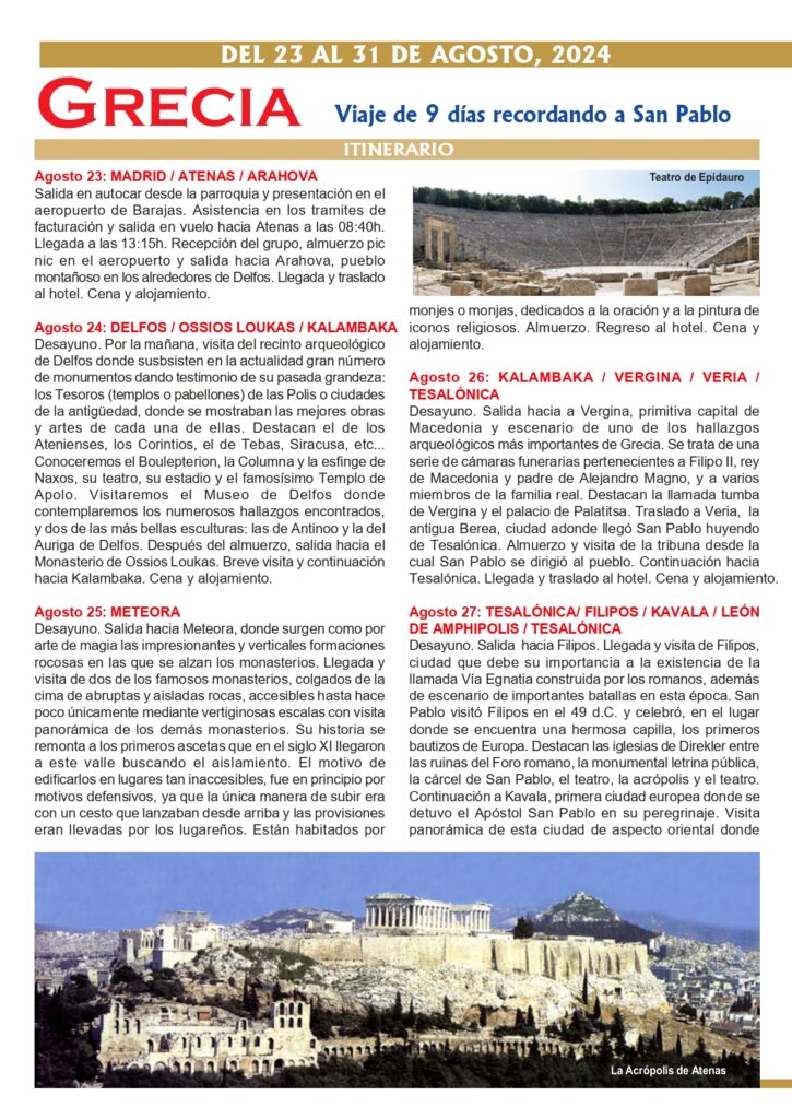 Este verano, te invitamos a formar parte de una experiencia única en nuestra peregrinación a la Ruta de San Pablo en Grecia, del 23 al 31 de agosto de 2025. Este viaje espiritual de 9 días recorrerá algunos de los lugares más emblemáticos que el Apóstol San Pablo visitó en su misión de evangelización, como Atenas, Meteora, Filipos y Tesalónica.